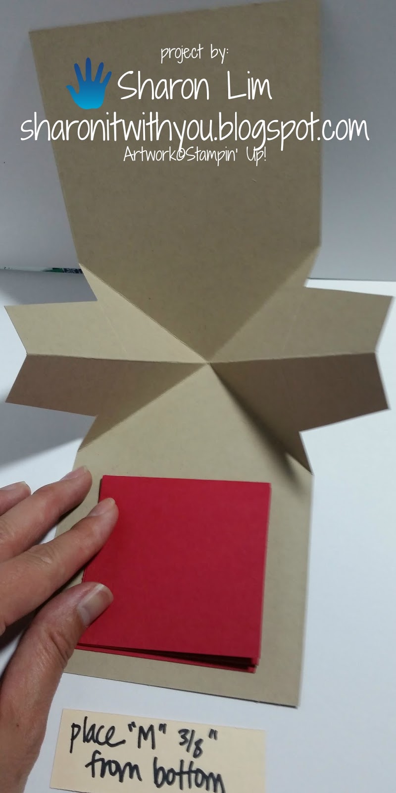 Fold like an "M"Cut out 2-1/2" Crumb Cake squares and 2-1/4" Whisper White squares to layer and layer onto the Real Red squares "M" shaped paper.